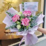 米兰母亲节康乃馨花束 3朵康乃馨搭配米兰配花 (3 Carnation + Milan Small flower and Leaf)